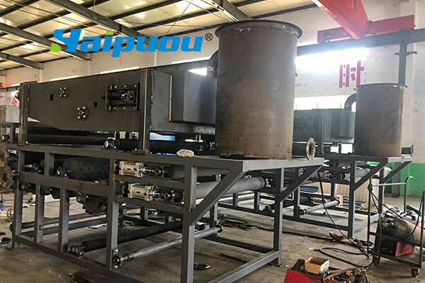 2、重力脫水段長,第一與第二重力脫水段總長5m多,使污泥在壓榨前充分脫水失去流動性。同時,重力脫水段還設置反轉等特殊機構,經形、“S”形壓榨等作用使污泥濾餅獲得低的含水量。